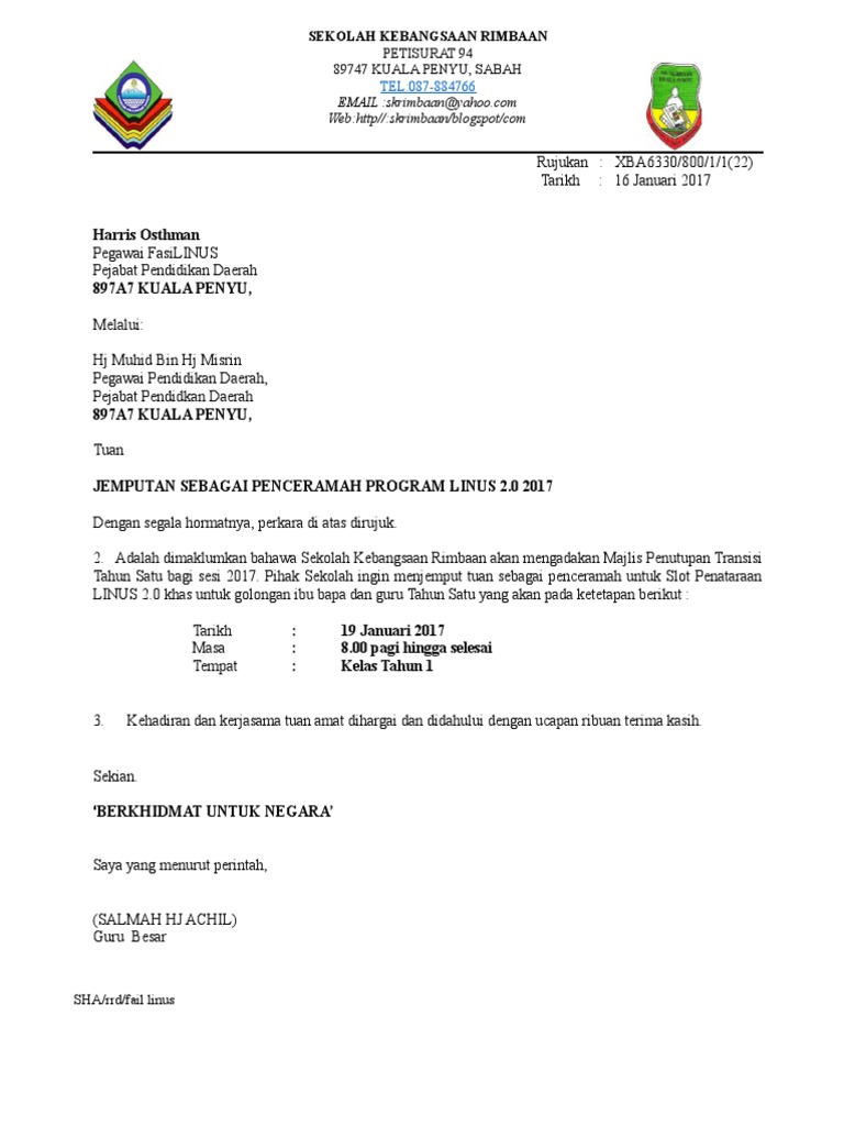 Surat Jemputan Penceramah from imgv2-2-f.scribdassets.com Kertas kerja pelaksanaan sulam format kertas kerja pelaksanaan sulam kokurikulum semester tiga (tahap 2 dan 3) 1. Kertas kerja ini tidak boleh dijadikan sebagai asas kelulusan, hanya sebagai contoh. (i) templat untuk abstrak tersedia untuk dimuat turun melalui pautan ini. Penceramah jemputan puan noor esah binti mohamad. Sila berikan maklumat lengkap mengenai setiap orang penceramah yang dicadang. Selain itu, beliau mempunyai banyak pengalaman sebagai penilai luar, profesor pelawat, penceramah utama dan jemputan, dan jawatankuasa sains. The collection that consisting of chosen picture and the best amongst others. Surat & kertas kerja | motivasi & pendidikan | rpt & eviden | pbs band 6 ting 1 2 3 | tips & tutorial |makanan & resepi.